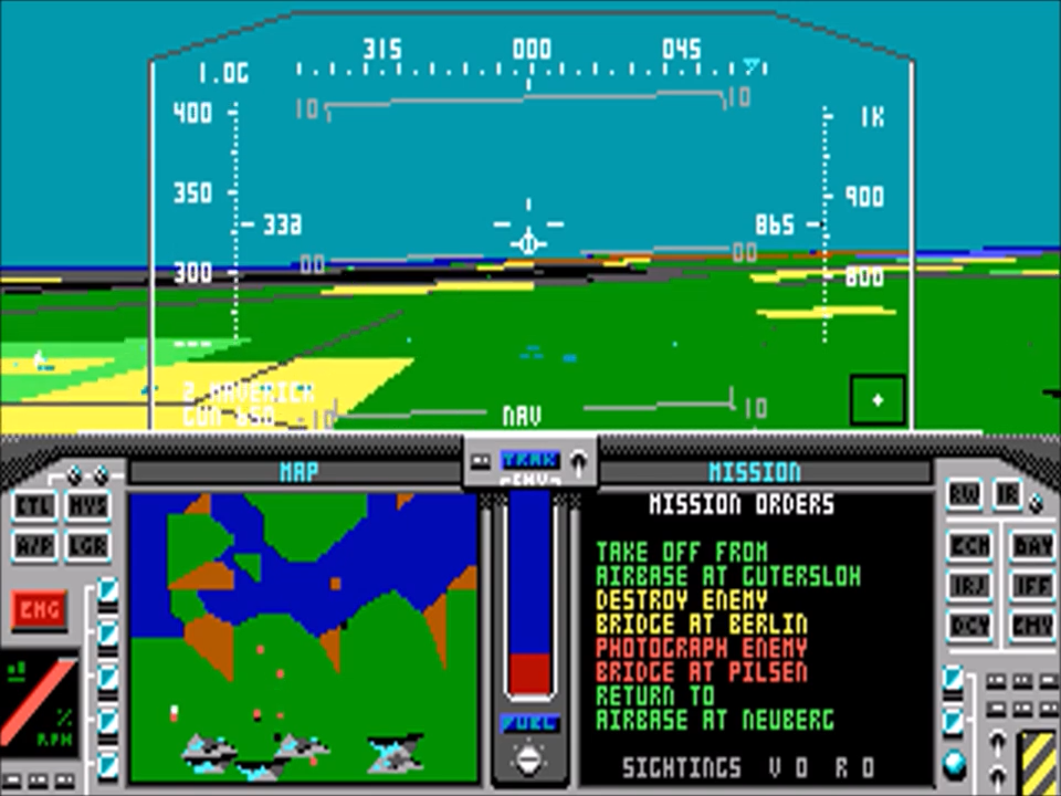 This mod is a small and simple graphic and sound improvement, featuring a freshly drawn cockpit panel for the aircraft, new RWR type sprites for the tactical MFD screen, as well as a new original title screen, credits screen and a one-game advert screen. The latter is meant as a proper homage to Red Storm Rising, which was released around the same time. And I feel the small reference in the original screen was not enough. I was never satisfied with the original cockpit art in F-19 Stealth Fighter, and found it inferior even to that of Project Stealth Fighter’s on C64. The scale of the surrounding cockpit art compared to the players viewpoint close to the MFDs and HUD, is just very wrong. Also, the original cartoon-like symbols on the tactical MFD were also a bit immersion-breaking. I added instead some F/A-18C RWR radar symbols. Now you won’t see the direction an enemy aircraft is going, nor the coloring indicating his altitude. Only that he is out there. Unfortunately there are no discerning between friendly and enemy aircraft contacts in-game, I cannot do much with that. Anyway, this change should make the simulation a bit harder and unpredictable. Soundwise I have only removed the low-altitude beeper that goes off constantly when you are trying to fly low and slow (as the doctrine is for the F-19). You will have to pay proper attention to the altimeter here. This only works for the Roland driver though. This mod would never have been possible without generous help from the brilliant programmer CanadianAvenger, who has dedicated his efforts to decode the mysterious PIC format that MicroProse used for images at the time, and its various iterations. I am very thankful to him, and I urge you to read his excellent blog here: https://canadianavenger.io |